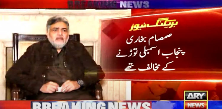 LAHORE: Pakistan Tehreek-e-Insaaf (PTI) leader Syed Samsam Bukhari on Tuesday said that he was against the Punjab Assembly dissolution, ARY News reported.