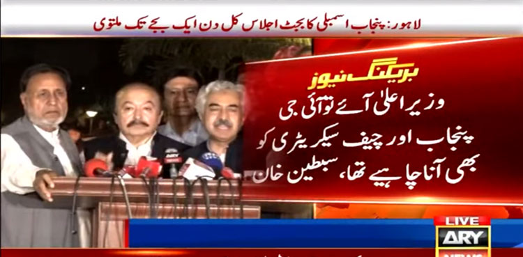 LAHORE: The Punjab Assembly session has been postponed till 1pm tomorrow (Tuesday) without the presentation of the budget for the fiscal year 2022-23, ARY News reported on Monday.