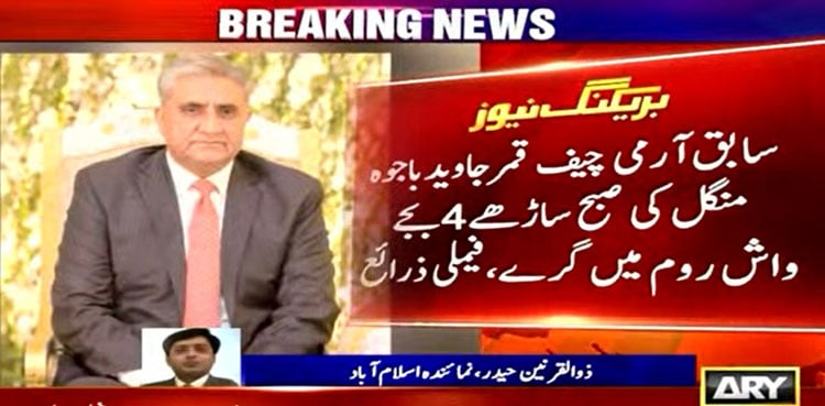 RAWALPINDI: Former Army Chief Gen (retd) Qamar Javed Bajwa sustained a skull fracture and other injuries after a fall at his residence, ARY News reported, citing family sources.