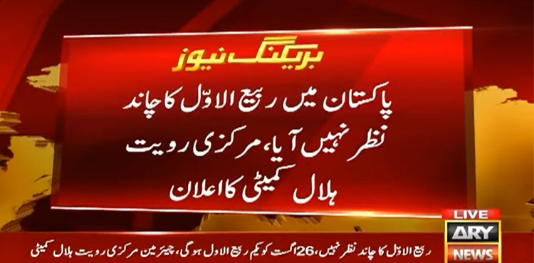 KARACHI: The Central Ruet-e-Hilal Committee has announced that the Rabi-ul-Awwal moon was not sighted, ARY News reported on Sunday.