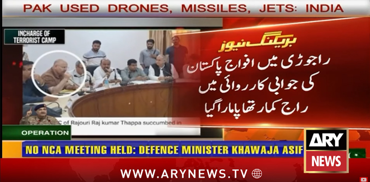 Pakistani forces in Operation Bunyan ul Marsoos killed the Additional Deputy Commissioner of Rajouri Raj Kumar Thapa for facilitating terrorist, ARY News reported.