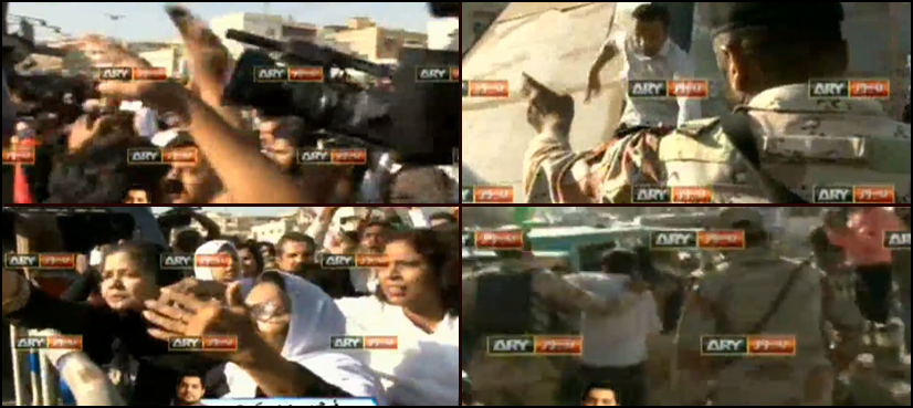MQM- London workers also clashed with the Rangers in Hyderabad outside the ‘Pukka Qilla’ ground. Many workers managed to enter the ground despite the presence of a large contingent of police and Rangers.