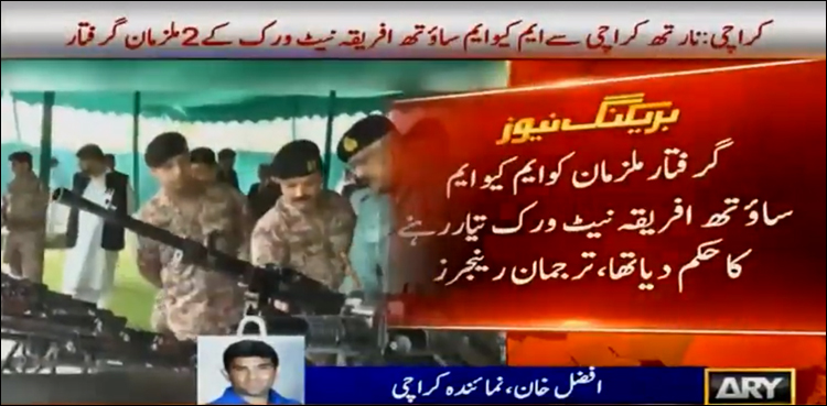 KARACHI: The Rangers have arrested two members of Muttahida Qaumi Movement (MQM)South Africa network, ARY News reported on Tuesday.