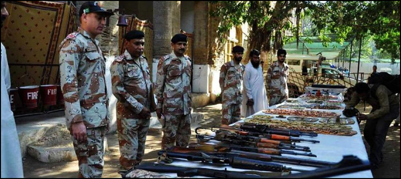 KARACHI: Paramilitary Rangers recovered a large haul of arms and munitions in a raid in Azizabad, ARY News reported on Friday.