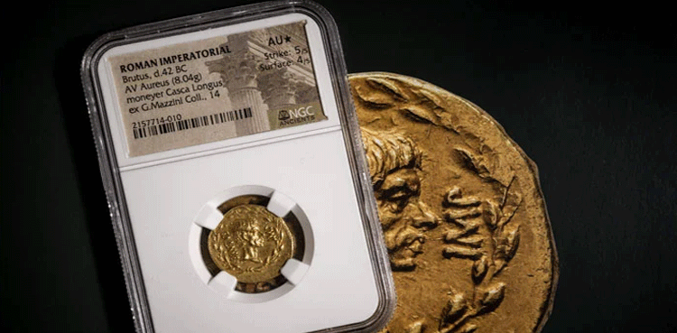 A rare Roman coin depicting Brutus, the assassin of Julius Caesar, was sold for €1.98 million at a Geneva auction on Monday, according to the auction house Numismatica Genevensis, AFP reported.