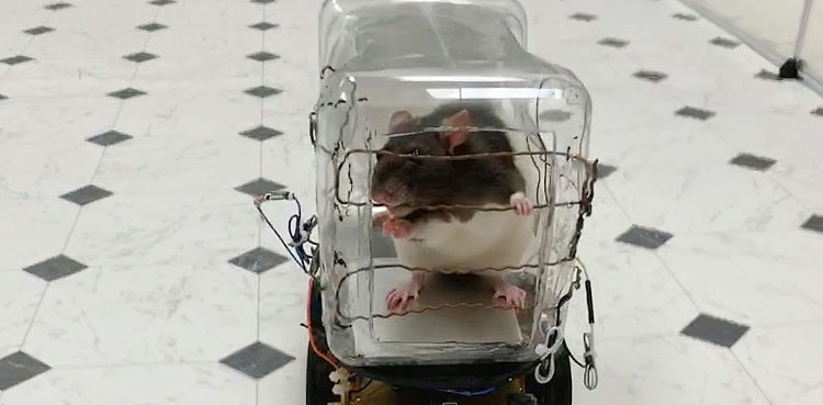 Seventeen rats were trained over several months to drive around an arena 150 centimeters by 60 centimeters made of plexiglass.