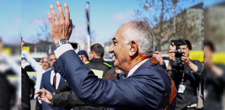 Demonstrations by both supporters and opponents were held in central Berlin and a person was detained after Pahlavi, who made an appearance, was spattered with some form of red liquid.