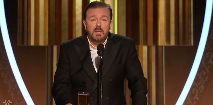 “Let’s have a laugh at your expense,” Gervais said at the start of his opening monologue, in which he vowed that the ceremony would be his last time hosting. “Remember we’re all gonna die soon. And there’s no sequel.”
