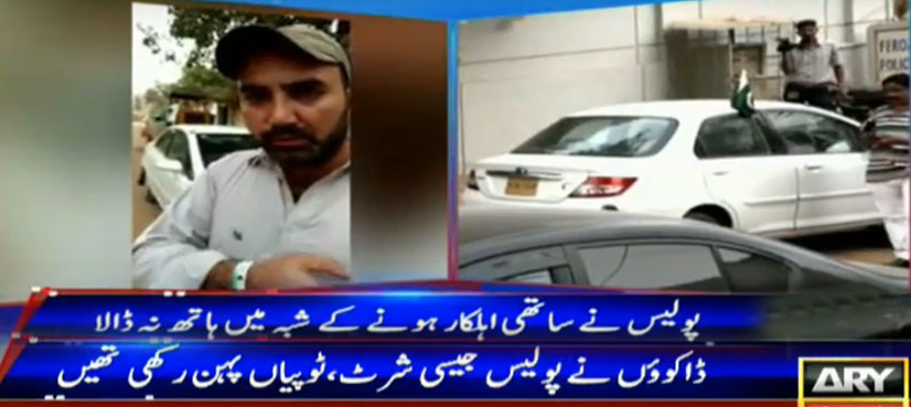 KARACHI: Armed robbers disguised as policemen robbed a currency exchange van in Karachi’s Bahadurabad area, ARY News reported on Thursday.