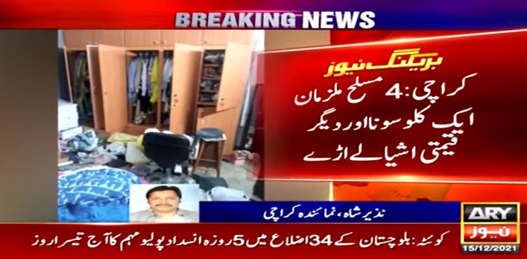 KARACHI: In another dacoity in Karachi, robbers on Wednesday looted one kg gold ornaments and other valuables from a house located in port city’s Defence Phase-1, ARY News reported.