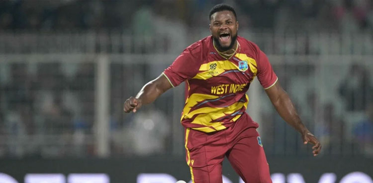 KOLKATA: West Indies pacer Romario Shepherd stole the spotlight by claiming the first hat-trick of the ICC T20 World Cup against Scotland in Kolkata, playing a vital role in his team’s victory, ARY News reported.