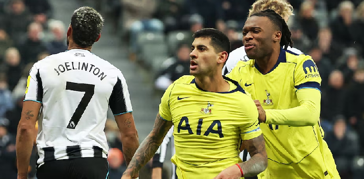 Tottenham Hotspur captain Cristian Romero scored with a diving header and an overhead kick to snatch a 2-2 draw for his side at Newcastle United in an entertaining Premier League clash on Tuesday, with the equaliser coming deep in stoppage time.