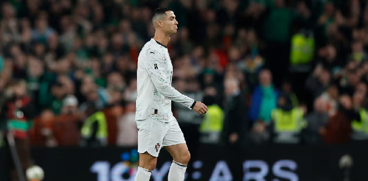Ronaldo was initially shown a yellow card after elbowing Ireland defender Dara O’Shea during the match in Dublin. However, it was upgraded to a red card and Ronaldo was sent off for the first time in his international career after the contact was reviewed by the referee on a pitch-side video monitor.