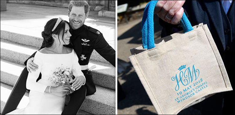 LONDON: The royal wedding became the global affair with millions of people across the world watched on their TV screens Prince Harry and Meghan Markle entering the martial bond at a grand ceremony at Windsor Castle. Those invited to the wedding were handed commemorative gift bags and that didn’t left behind in becoming a cynosure for viewers!