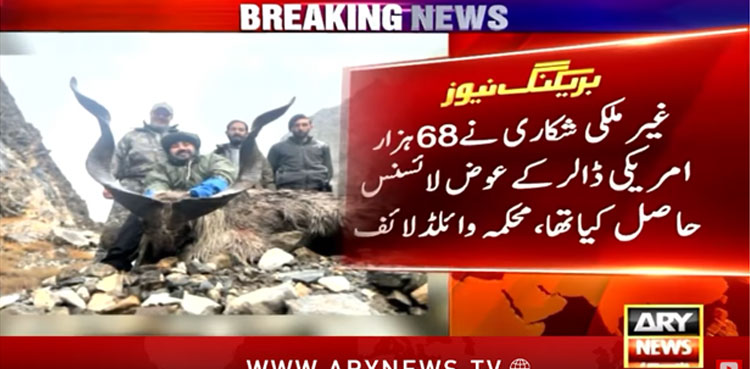 The hunt took place in the Gahirat Gol Game Reserve in Chitral district under the supervision of the Wildlife Department. According to officials, the markhor had long, spiralling horns measuring around 41 inches.