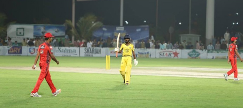 Saima Group’s captain Fahaddis Bukhari replaced Jahanzaib and he looked to accelerate the scoring rate straightaway. He struck three sixes in his brief stay; he scored 19 runs on 6 balls.
