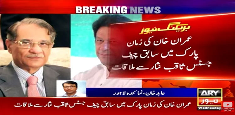 LAHORE: Former chief justice Saqib Nisar met Pakistan Tehreek-e-Insaf (PTI) Chairman Imran Khan at the latter’s Lahore residence on Wednesday.