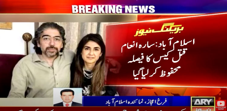 ISLAMABAD: A district and sessions court in Islamabad on Saturday reserved its verdict in Sara Inam murder case, ARY News reported.