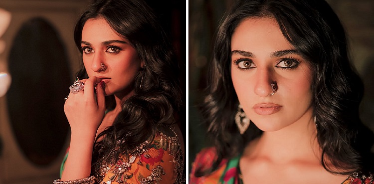 A-list actor Sarah Khan has unveiled her much-anticipated first look from the upcoming serial ‘Shair’, co-starring Danish Taimoor, in their maiden collaboration.