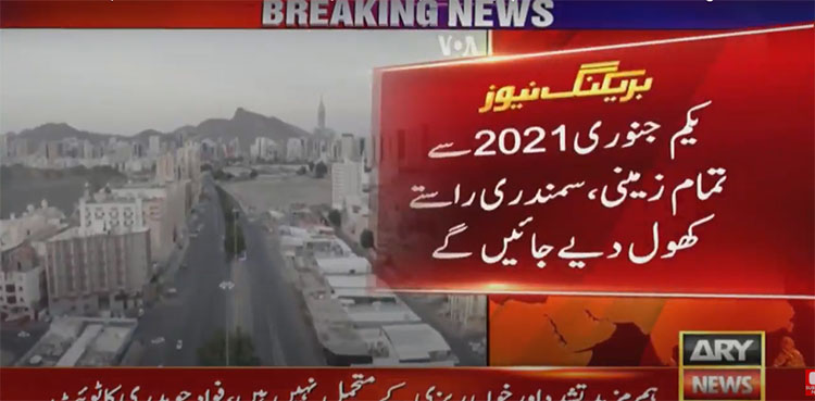 RIYADH: Saudi Arabia has decided to lift travel restriction in the kingdom from 01 January 2021, imposed earlier owing to COVID-19 pandemic, ARY NEWS reported on Sunday.