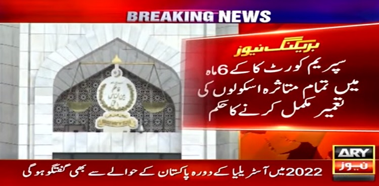 ISLAMABAD: The Supreme Court (SC) has ordered Earthquake Reconstruction and Rehabilitation Authority (ERRA) to reconstruct the schools in Khyber Pakhtunkhwa which got destroyed in the 2005 earthquake within six months, ARY News reported on Tuesday.