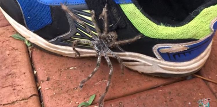 A scary video of a large huntsman spider crawling out of a child’s shoe in Australia is viral across social media platforms.