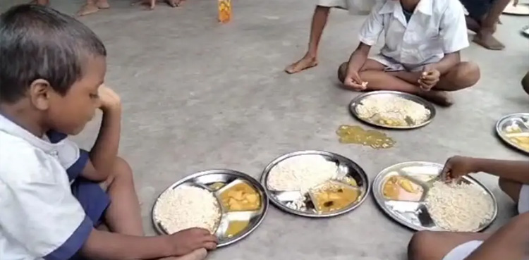 A concerning incident was reported from India’s Brahmapur city where the students of High School in the Mayurbhanj district were served with puffed rice (Mudhi) along with dal.