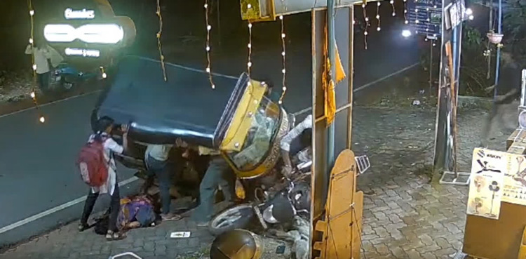 The incident occurred on Friday when an autorickshaw, trying to avoid hitting the woman identified as Chetana as she crossed the road, lost control and flipped over, pinning her underneath.