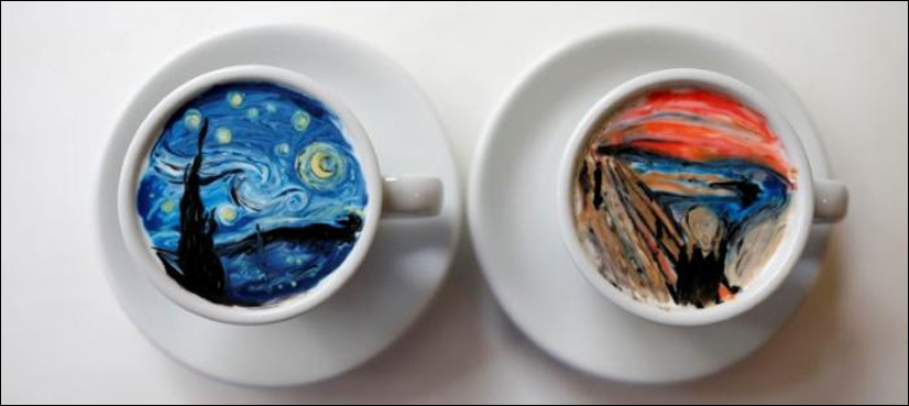 With meticulous strokes of tiny brushes and spoons, Lee, 26, recreates the likes of Vincent van Gogh’s “The Starry Night” and Edvard Munch’s “The Scream” using thick cream stained with food coloring atop a cup of coffee.