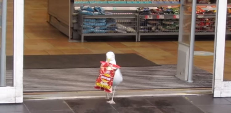 WATCH: Smart seagull steals a pack of chips from supermarket
