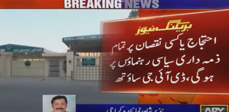 In a statement, Brigadier (retd) Haris Nawaz said that concrete security measures were taken in and around the Sindh Assembly. He said that stern action would be taken against those exhibiting any lawlessness.