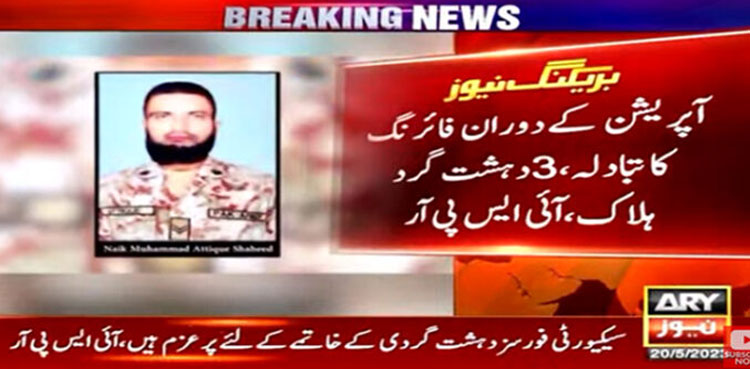 “During an intense exchange of fire, three terrorists were killed,” the ISPR said, adding that weapons and ammunition were found in the terrorists’ possession.