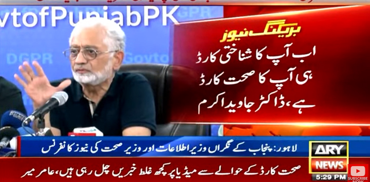 The caretaker Punjab Health Minister Dr Javed Akram has announced that Computerised National Identity Cards (CNICs) will be used as Sehat Health Cards to avoid misuse of the health insurance facilities, ARY News reported on Sunday.