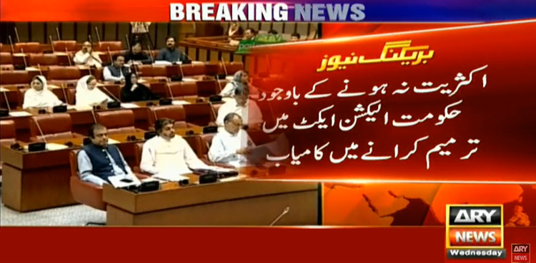 ISLAMABAD: The government has managed to get an approval of Election Act amendment despite not having the majority in the Upper House, ARY News reported on Wednesday.