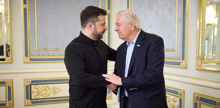 Graham, a Republican from South Carolina, was accompanied on a visit to Kyiv by Connecticut Democratic Senator Richard Blumenthal who cosponsored the Senate sanctions measure, which sets a 500% tariff on goods imported from countries that buy Russian oil, gas, uranium and other products.