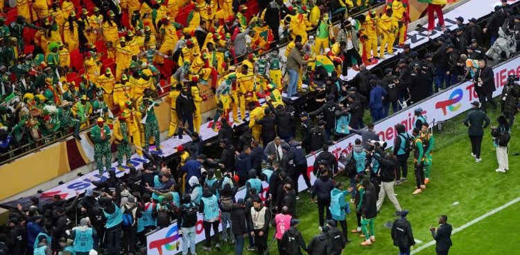 A group of Senegalese fans clashed with Moroccan security as they tried to enter the pitch in protest following the penalty decision.