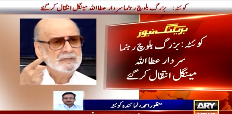 QUETTA: Senior Baloch leader Sardar Ataullah Mengal has passed away at 93 in Karachi as he was suffering from cardiovascular disease, ARY News reported on Thursday.