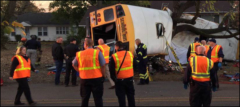 Images broadcast on local media showed the bus flipped on its side in the eastern city of Chattanooga with a tree splicing its center.