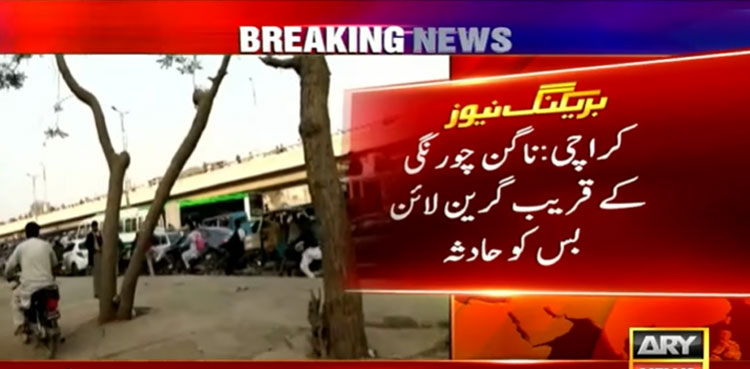 KARACHI: Several passengers received minor injuries after one of the buses of the Karachi Green Line BRT lost control and hit the railing near Nagan Chowrangi on Friday morning, ARY News reported.
