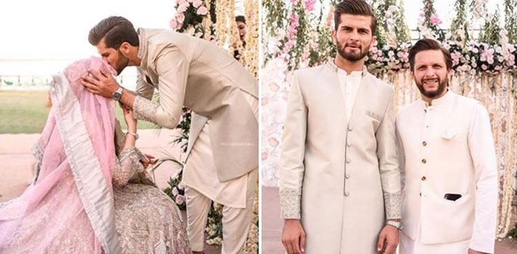 The legendary cricketer shared the wedding pictures of Shaheen Afridi with Ansha Shahid on the social media application Instagram. The first click in the two-picture album showed Shaheen Afridi kissing Ansha on her head. The second click was that of the left-arm pacer with teammates.