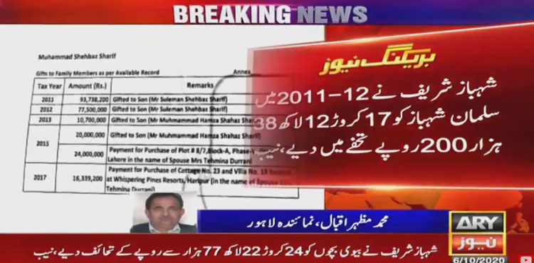 ISLAMABAD: The National Accountability Bureau (NAB) investigating PML-N President Shehbaz Sharif and his family over alleged money laundering and assets beyond means revealed on Tuesday that he gave and received lavish gifts worth hundreds of millions of rupees, ARY News reported.