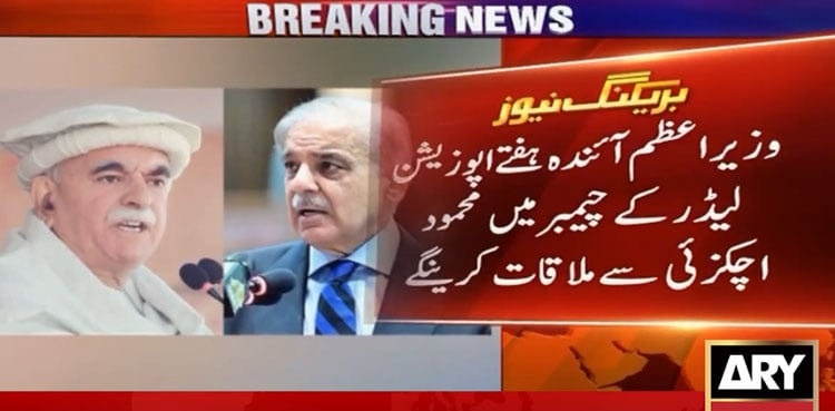 Prime Minister Shehbaz Sharif is set to meet Opposition Leader in the National Assembly Mahmood Khan Achakzai, in his chamber next week, ARY News reported on Friday.