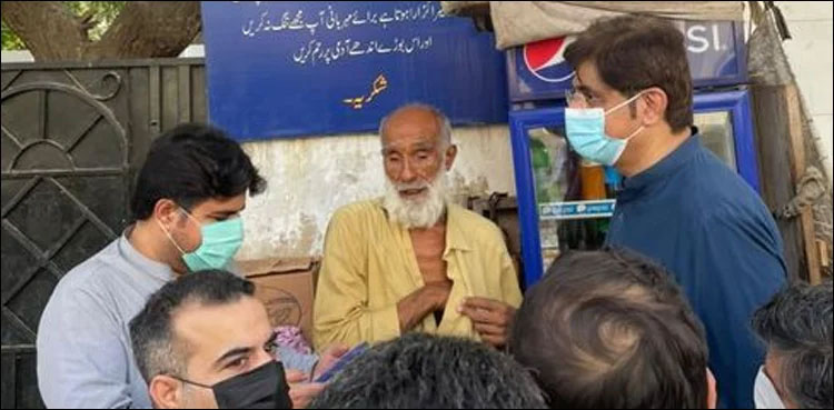 According to details, Sindh chief minister, who is known for his snap visits across Karachi, stopped at a roadside shop near Tariq Road during his surprise visit and met a blind vendor running a cold drink corner shop.