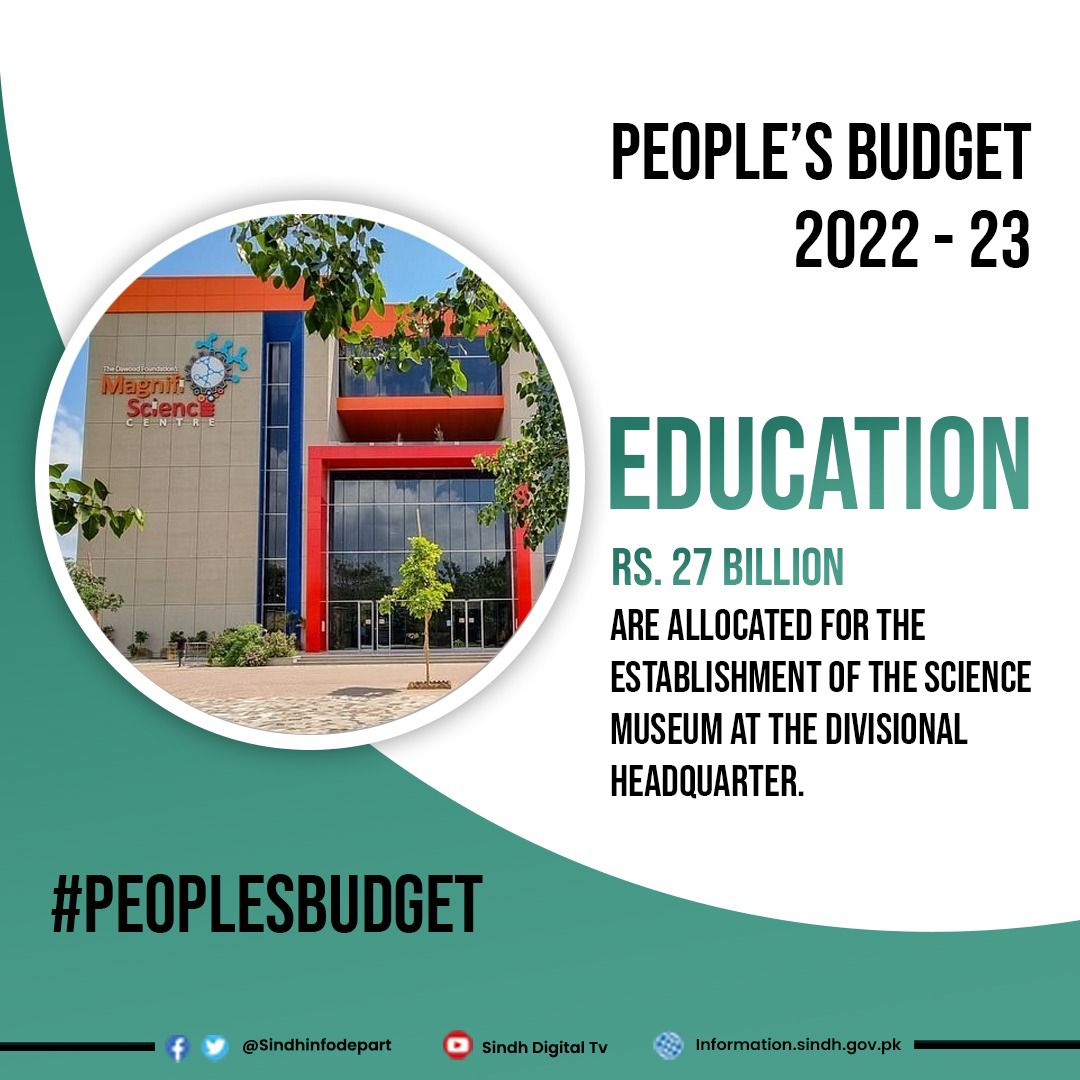 Rs 27 billion has been allocated for the establishment of science museums at all divisional headquarters of Sindh.