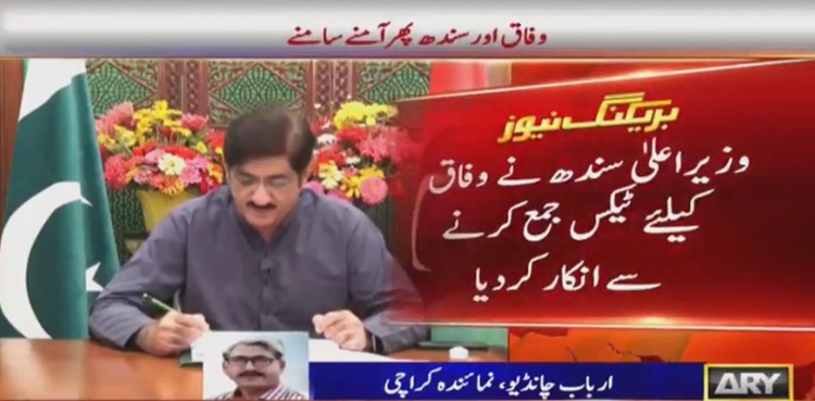 KARACHI: Chief Minister Sindh Syed Murad Ali Shah has refused to collect taxes for Federal Board of Revenue (FBR) under Income Tax Ordinance 2001, ARY NEWS reported on Monday.