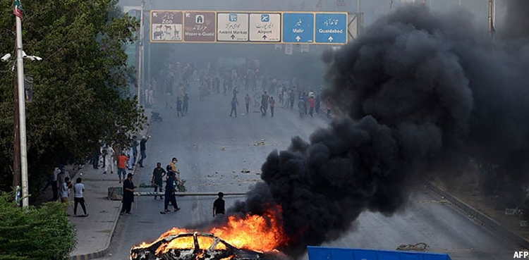 On May 9, motorcycles and a car had been torched by rioters on Karachi’s Sharea Faisal during protests against the arrest of Pakistan Tehreek-e-Insaf (PTI) chief Imran Khan.