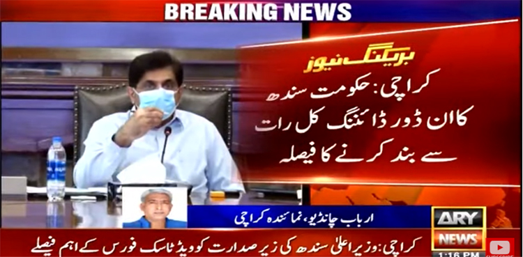 The decision was taken by the provincial COVID task force meeting headed by Chief Minister Syed Murad Ali Shah today.