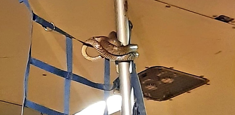 The aircraft had been parked at a secluded bay area when the baggage handler spotted the snake which ensued panic there and led the ground staff to immediately clear the area besides informing the airport authorities, according to Indian media reports.