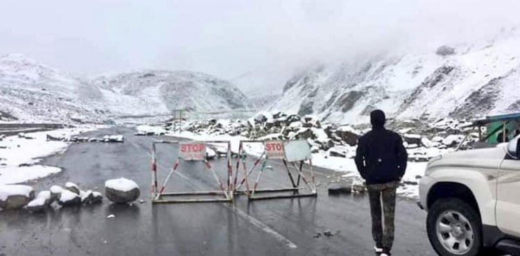The moderate rain with snowfall at breathtaking Babusar Pass in Upper Kaghan turned the weather extremely cold amid thrill and excitement by tourists.