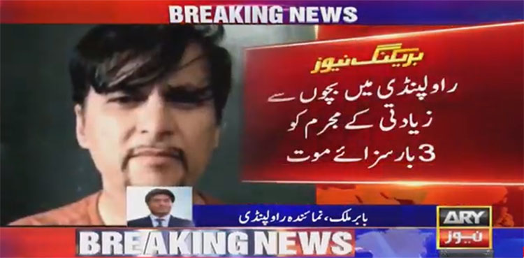 RAWALPINDI: A court on Wednesday awarded the death sentence to a pedophile Sohail Ayaz three times under the charges of sexually assaulting children and filming the horrific incidents, ARY NEWS reported.